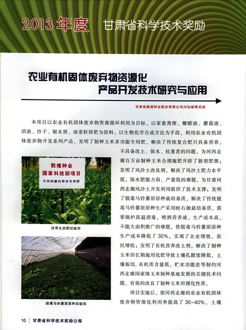 “農(nóng)業(yè)有機(jī)固體廢棄物資源化產(chǎn)品開(kāi)發(fā)技術(shù)研究與應(yīng)用”喜獲甘肅省技術(shù)發(fā)明一等獎(jiǎng)